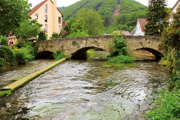 Die obere Grenze verläuft unterhalb des Wehrs bei der Firma B&F Baumarkt Pfullingen bis zur unteren Grenze Straßenbrücke Firma Bauhaus (Emil-Adolff-Straße).